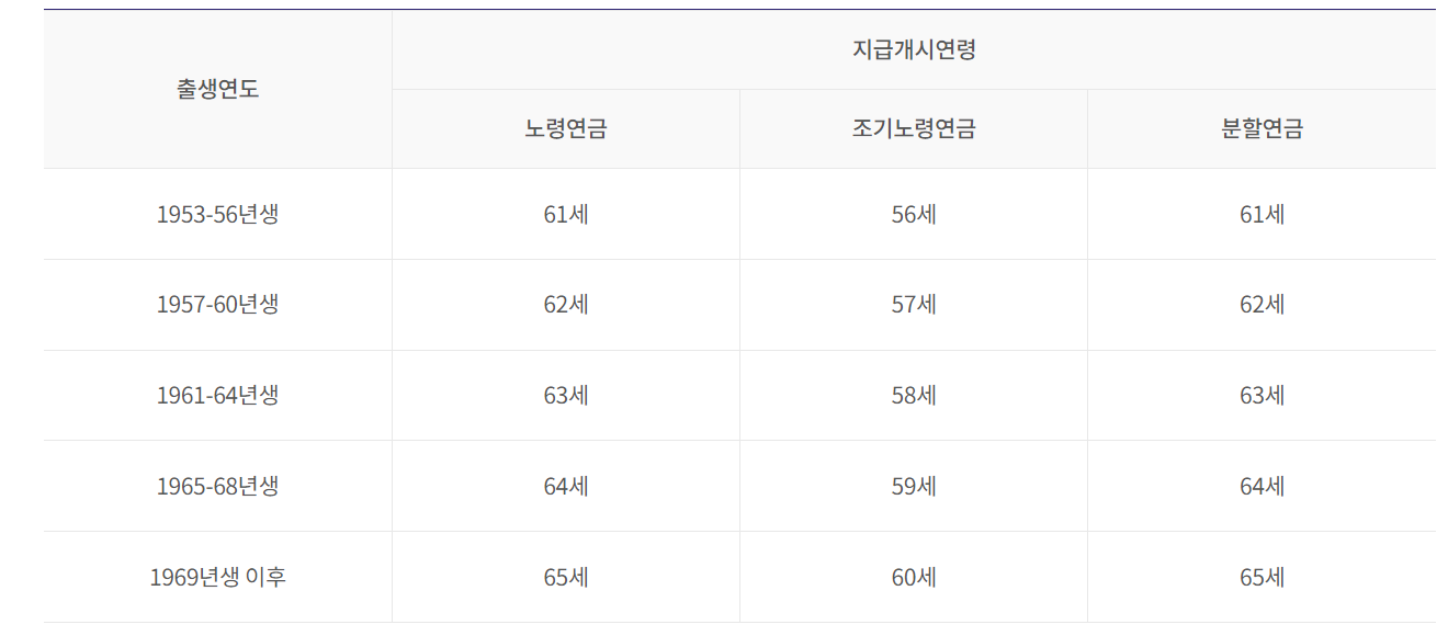 노령연금 수급권 지급 개시 연령 증가아래 표를 참조하십시오. 노령연금을 받을 수 있는 나이가 해마다 바뀌었기 때문에 출생연도가 높아질수록 퇴직연령이 계속 높아집니다.