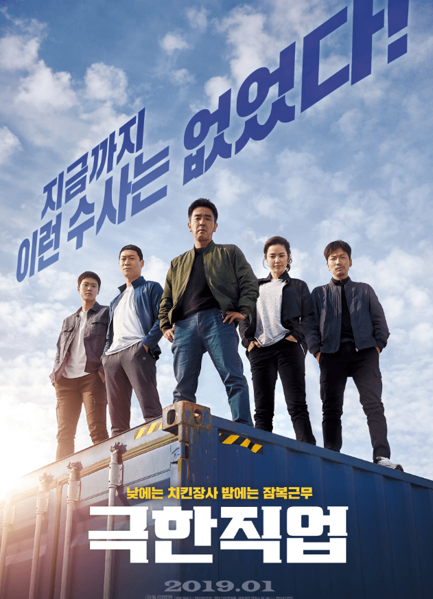 2019년 개봉한 극한직업은 러닝타임 111분, 1626만 관객을 동원했다. 수상내역으로는 우디네극동영화제 황금뽕상, 신영화예술영화제 신상옥 감독상, 춘사국제영화제 신인남우상/관객인기상, 황금촬영상 시상식 영화발전공로상 등이 있다. 충북국제무예액션영화제 무술액션상 흥행상/올해의 신인남우상, 환국영화평론가협회상 남우조연상, 청룡영화상 한국영화 최다관객상, 대종상 영화제 남우조연상/기획상. 감독으로는 이병헌이 연출을 맡았으며, 그가 작업한 작품으로는 과속스캔들, 냄새가 난다, 써니, 타짜-신의 손, 힘내라, 병헌씨, 오늘의 로망스, 스물, 바람 바람 바람 등이 있다. , 레슬링 선수, 꿈, 예쁜 남자. 故 반장 역의 류승룡(작품-인생은 아름다워, 장르불문 로맨스, 7년의 밤, 염력, 서울역, 도리화, 객객, 명량, 타겟, 7호실의 선물, 더 광해왕이 된 남자, 내 아내의 모든 것, 고지전, 궁극의 병기 활, 아이들…, 평양성, 된장 등), 장형사 역의 이하늬(작품 – 킬링로맨스, 고스트, 에일리언 + 인물 1부, 블랙머니, 형제, 침묵, 조작)시, 로봇사운드, 타짜-신의 손, 가십: 감독이 미쳤다, 왕이로다, 연가시 등), 마형사 역의 진선규(작품) – 백작, 공조2 : 인터내셔널, 태일, 승호, 퍼펙트)맨, 암전, 롱리브더킹 : 목포영웅, 돈, 사바하, 출발, 이웃, 암흑살인, 크라임시티, 남한산성 빌런 : 월드오브나드 얘들아 등), 브로커, 언프레임드, 송년회, 메소드 연기, 국도극장, 액시트, 브라더, 원라인 등), 재훈 역의 공명(작품-한산: 용의 출현, 기방도령, 마인드프리) 로맨스 LR, 이건 우리 끝이야, 검색대, 도희, 어떤 시선 등)