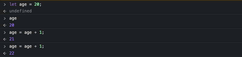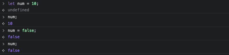 Tip) 변수에 저장된 값의 타입이 달라도 자바스크립트에서 업데이트가 가능하다.