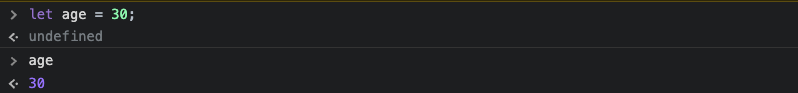 let age = 30; // 변수 age 안에 들어갈 값은 30 입니다.