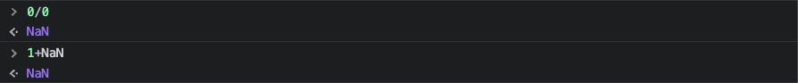 : 수학에서 0/0을 만드는 것은 의미가 없거나 불가능하므로 값을 정의할 수 없고 값을 지정할 수 없습니다. 따라서 JavaScript에서는 (0 나누기 0)이 NaN으로 표시됩니다. 인쇄된 NaN 타입은 문자로 보이지만 typeof로 확인해보면 숫자 타입임을 알 수 있습니다.