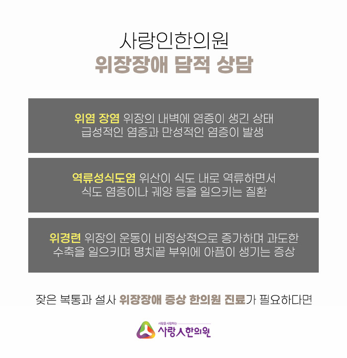현대의학에서는 소화성 궤양, 신경인성 위염, 역류성 식도염 등의 증상과 유사한 문제를 일러 담관이라고 부르는 경우가 많다. 그렇기 때문에 원인불명의 더부룩함, 복통, 소화불량, 장질환으로 고생하시는 분들이 평택담즙병 치료를 생각하며 병원에 내원하시어 한방치료를 받으시고 있습니다.