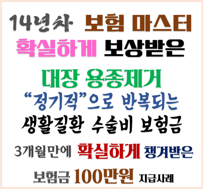30세 40세 대장용종절제수술 보험수술 보험질병수술 150만~40세 300세 부상수술